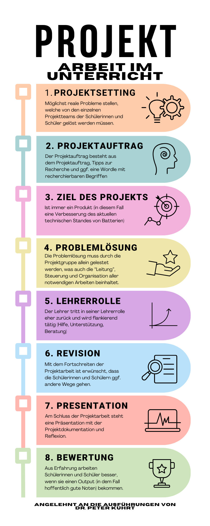 Kürth, P. (2022). Projektarbeit - Kriterien für den Unterricht. Internet: https://www.lehrerfreund.de/schule/1s/projektarbeit-projektunterricht/2229. Abruf: 10.04.2024