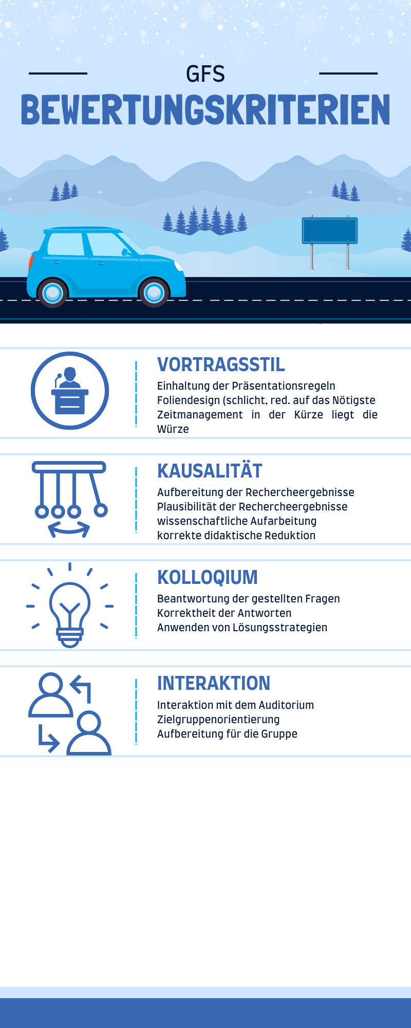 Im zweiten Teil geben Mitschüler und Lehrer Feedback zum Vortrag (Wissenschaftlichkeit, Vortragsstil, Auffälligkeiten, Tipps, ...).